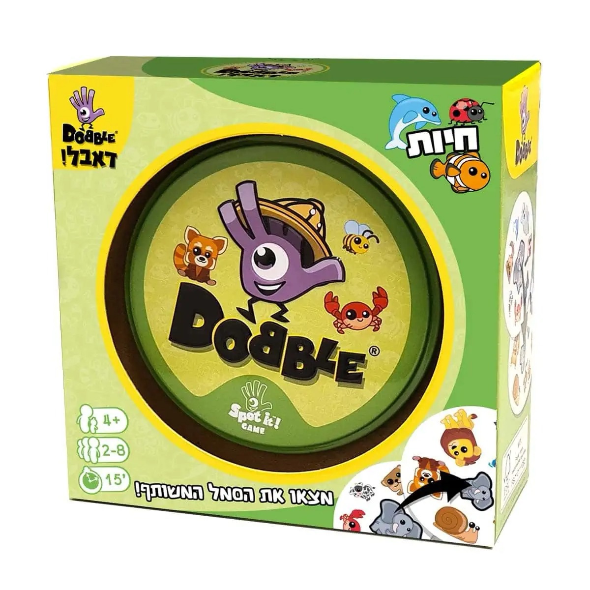 מהירות, ריכוז וכושר הבחנה. דאבל! מכיל 55 קלפים, 8 חיות על כל קלף, ותמיד תהיה רק חיה אחד משותפת בין כל זוג קלפים שתבחרו!