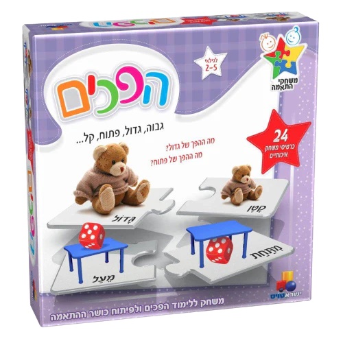 הפכים משחק ללימוד הפכים ולפיתוח כושר ההתאמה   שחקו עם הילדים ולמדו אותם הפכים: מה ההפך מגדול? ומה ההפך מנקי? תוך כדי משחק אוצר…