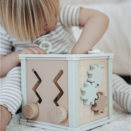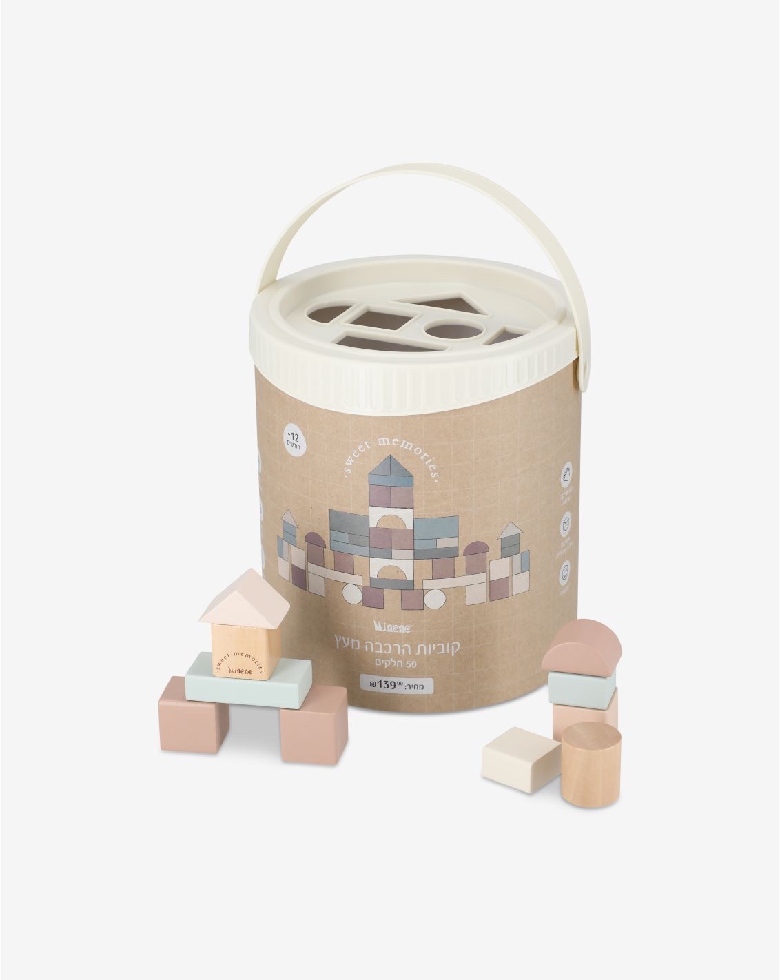 קוביות הרכבה מעץ עם מכסה בעל פתחים בצורות להתאמה והכנסה של הקוביות. משחק קוביות מקנה לילדכם הזדמנות לארגן ולבנות את עולמו בהנאה ויצירתיות. תוך כדי משחק ילדכם יחקור וילמד מושגים חשובים כמו גודל, צורה, צבע ומיקום. בנוסף, באמצעות המשחק יפתח ילדכם מיומנויות חשובות כמו מוטוריקה עדינה, תיאום עין יד ושליטה על הידיים. מכיל 50 חלקים. גודל 18*18*20 ס"מ. מתאים לגילאי : שנה + . אזהרות: –למען בטיחות ילדך ובריאותו יש להשתמש במוצר זה תחת פיקוח אדם מבוגר בכל זמן. – יש לשמור הרחק ממקום אש . – יש להרחיק את האריזה מהישג ידם של ילדים . – לפני כל שימוש יש לבחון את המוצר. – יש להשליך את המוצר עם סימן ראשון של בלאי. המוצר עומד בתקן הבינלאומי EN-71 ו CE לצעצועים. יצרן :T.A.C ארץ ייצור: סין , ייבואן : מינה בע"מ .