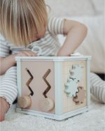 משחק עשיר ומגוון הכולל 5 לוחות פעילות שונים לחיזוק המיומנויות המוטוריות והקוגנטיביות. פאה עליונה : מבוך חרוזים המתנתק מהקובייה, ניתן לשחקו בנפרד או להכניסו אל תוך הקובייה בסיום המשחק לאחסון קל ונוח. פאות צד: גלגלי השיניים , התאמה והשחלה של צורות, כרטיסיות מסתובבות ומבוכים. דרך המשחק יחזק ילדכם את היכולות המוטוריות, תיאום עין יד והבנת הקשר בין פעולה לתוצאה. המשחק מכיל קובייה, מבוך חרוזים ו 4 צורו והשחלה. גודל 30*15*15. לגילאי : 18+ חודשים אזהרות: – למען בטיחות ילדך ובריאותו, יש להשתמש במוצר זה תחת פיקוחו של אדם מבוגר בכל זמן. – יש לשמור הרחק ממקור אש. – יש להרחיק את האריזה מהישג ידם של ילדים. – לפני כל שימוש יש לבחון את המוצר. –יש להשליך את המוצר עם סימן ראשון של בלאי. – המוצר עומד בתקן הבינלאומי 71 – EN ו CE לצעצועים. יצרן: T.A.C, מחוז ג'ג'יאנג, סין היבואן: מיננה בע"מ